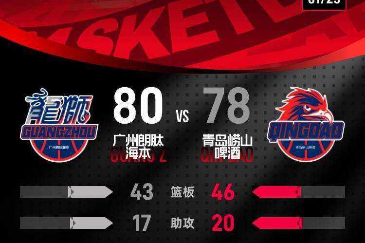 【搜狐体育战报】北京时间1月25日CBA常规赛第19轮,客场作战的广州朗肽海本以80-78击败青岛崂山啤酒,青岛崂山啤酒遭遇3连败,广州朗肽海本取得3连胜。徐昕13分10篮板1助攻,乔丹·米奇28分13篮板2助攻。