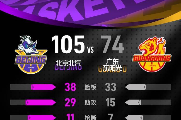 末节胡明轩连得5分,随后曾凡博左侧底角命中三分,广东队请求暂停。范子铭替补登场,胡明轩抢断上篮得分。双方派上全华班,由于分差较大,比赛最后3分钟提前进入垃圾时间。最终,北京队主场轻取广东队。